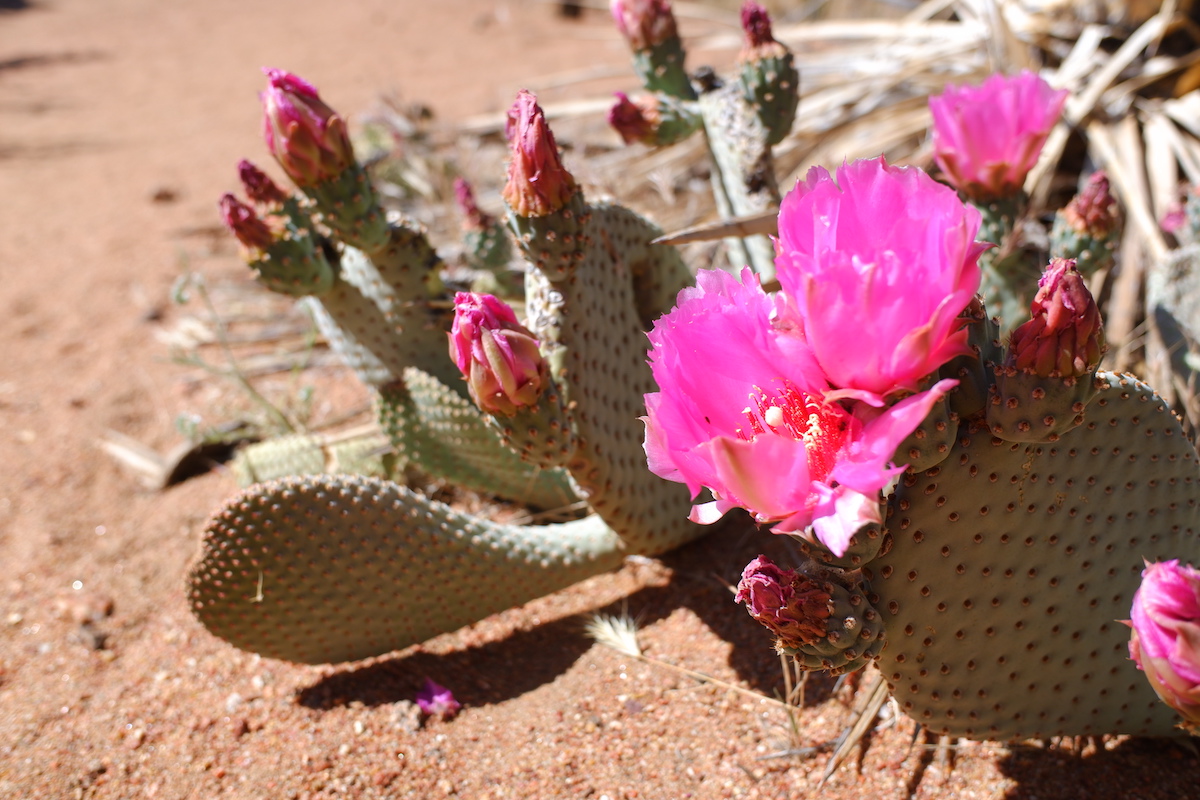 こんなサボテンが所々に。キレイなのだが注意しないと針が足に刺さってしまう。