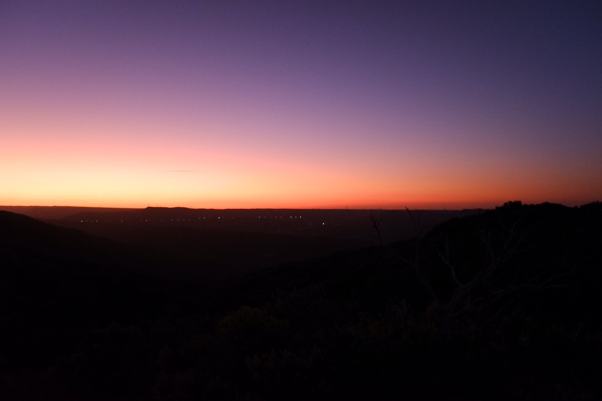 これまでとはまるで別世界の暗闇のなか、足元を照らすヘッドライトを頼りに注意深く足を進める。昼間に歩くとたいしてむずかしくないトレイルなのだろうが、トレイルを一歩踏み外すと闇に引きずり込まれてしまいそうなほどの恐怖感があった。いくら歩いても景色はまったくうつり変わらず、光の筋をたどる退屈な単純作業を繰り返した。