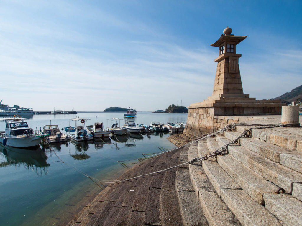 干潮と満潮の潮位差が最大で4m前後ある瀬戸内海。どの潮位でも船荷の積み下ろしが容易になるよう、階段状になった波止場「雁木」が古くから造られてきた。浮桟橋が普及した現在ではあまり見られなくなった港湾施設である。