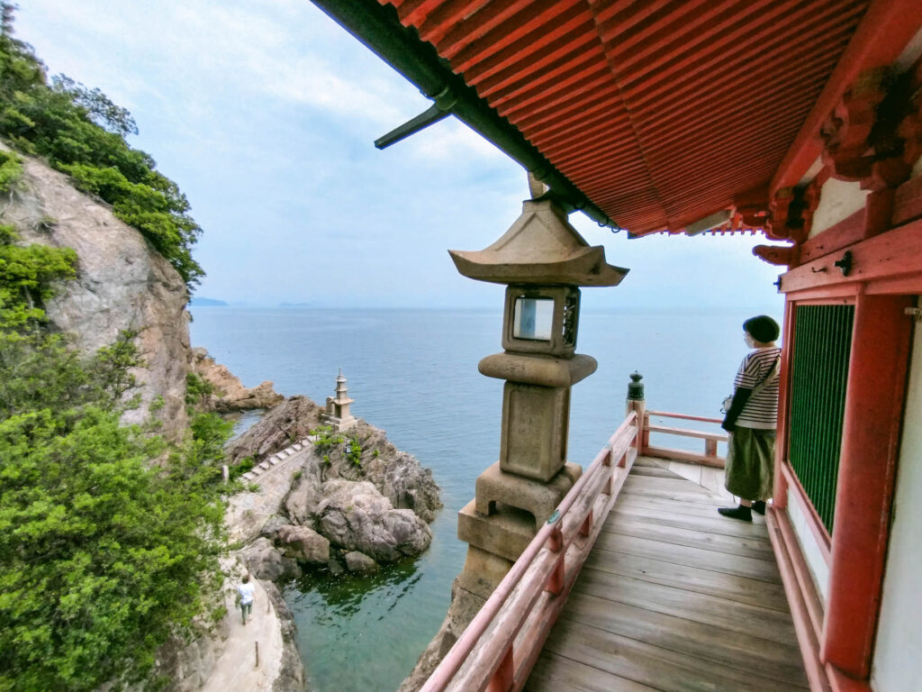 海ゆく人に感嘆してもらうための寺社建築。この下の海を行き来する舟人は、海上から賽銭を奉じる習わしがあったという。よく知られた観光地だが一見する価値あり。江戸時代の港湾施設や町並みを残す景勝地「鞆の浦」も近い。