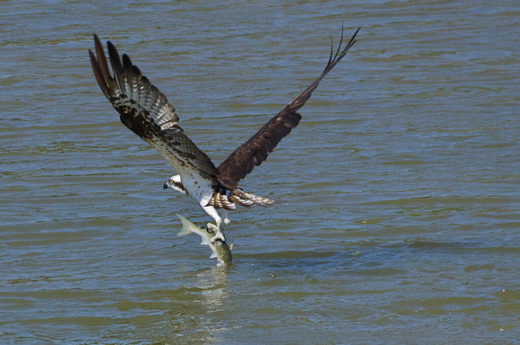 空高く静止し、急降下、水面にダイブして魚を掴むミサゴ。
