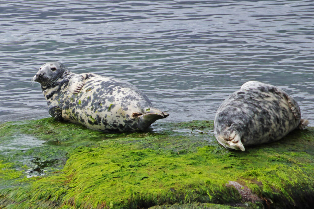 カヤックを怖がるどころか、興味を持つアザラシ。