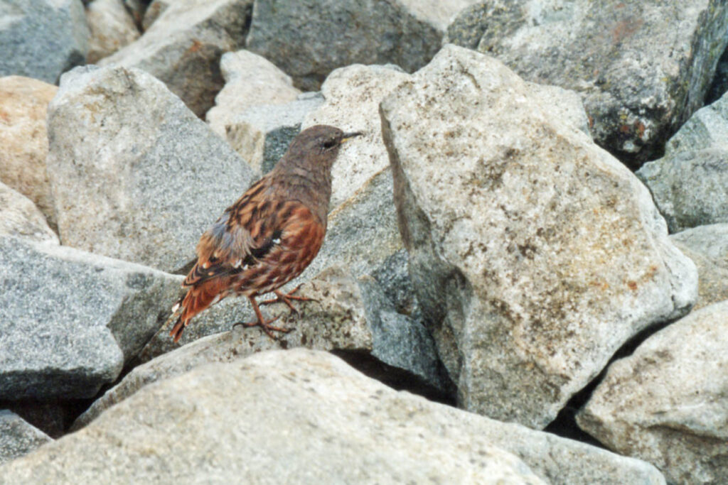 イワヒバリは山でいちばんのフレンドリーバード。北穂高岳山頂にて。