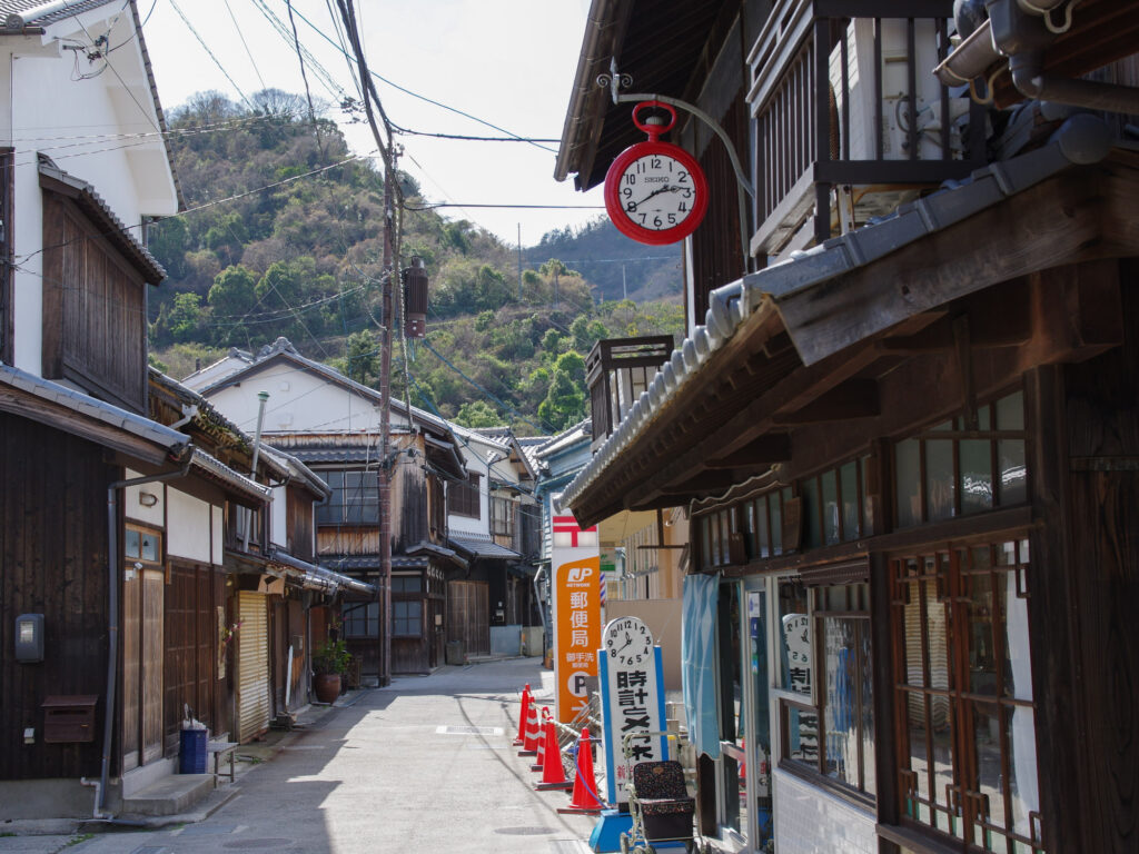 御手洗は大長のすぐ隣で、江戸時代には潮待ち港として栄え、参勤交代に利用される海の本陣もおかれた。同じ瀬戸内海で歴史的町並みといえば「鞆の浦」が人気だが、御手洗にも時代を閉じ込めたような古民家が残っている。歴史と伝統ある建築物群として特に価値のある「重要伝統的建造物群保存地区」に指定されている。