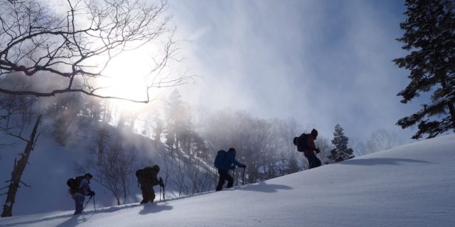 ツアープランも注目だ。1〜2時間程度のハイクで入山する初心者向けのツアーはもちろん、大町、白馬、小谷、糸魚川エリアからその日のベントコンディションの場所を予想してパウダー滑走を行うワンデーツアー、そのほかスキー場のリフトでアクセスができるフィールドで行う「ノーハイクツアー」は、“ハイクアップは苦手だけれどパウダーを滑りたい、バックカントリーの雰囲気を味わいたい”という人のために、白馬五竜スキー場や白馬コルチナスキー場などでおもに開催されるプランだ。