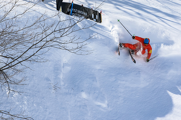 大会の舞台は、栂池高原スキー場内、白樺ゲレンデの一部を一週間クローズして特設される非圧雪コース。滑走方法はスキーでもスノーボードでもOK。レールやキッカーなどのセクションでトリックを競うスロープスタイルや、滑走スピードを競うアルパインとも違い、非圧雪のコース内でのボードコントロール、スタイル、ライン、エアなどすべてを含めた全体の流れを競うフリーライドバトルです。つまり、深雪好き、地形好き、そしてフリーラン好きにはたまらないステージが用意されているということです。