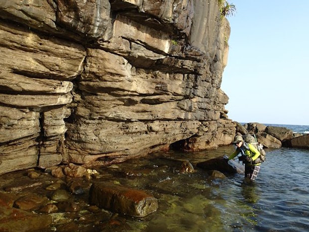 岩場が海に迫る場所では、ときに腰まで浸かりながら突破する
