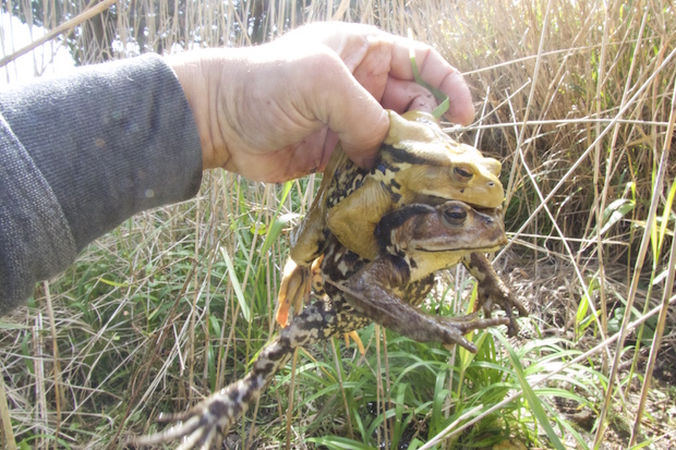 <奥山英治の野遊び暦・啓蟄> 熱い抱擁を体験せよ! ヒキガエルの「蛙合戦」
