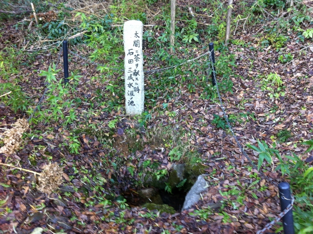 観音寺にある「石田三成 水汲みの井戸」。三成が水を汲んだとされる井戸の跡があります。
