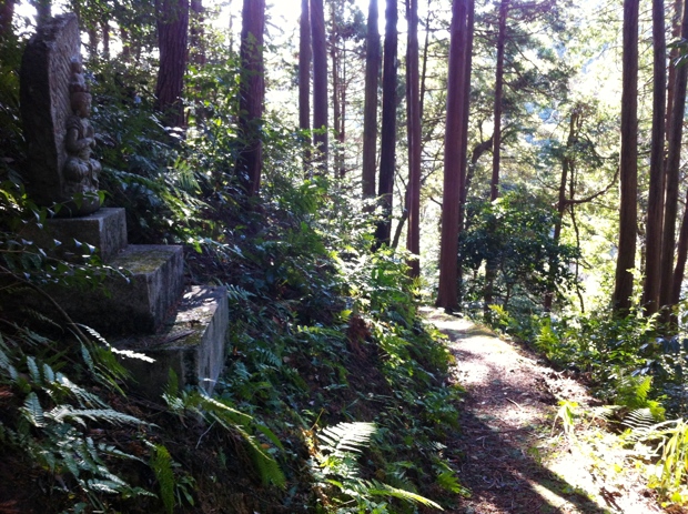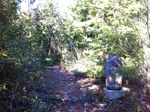 観音様に見守られながら、すんずんと登っていきます。周囲は木に覆われているので、登山道上ではあまり視界はききません。
