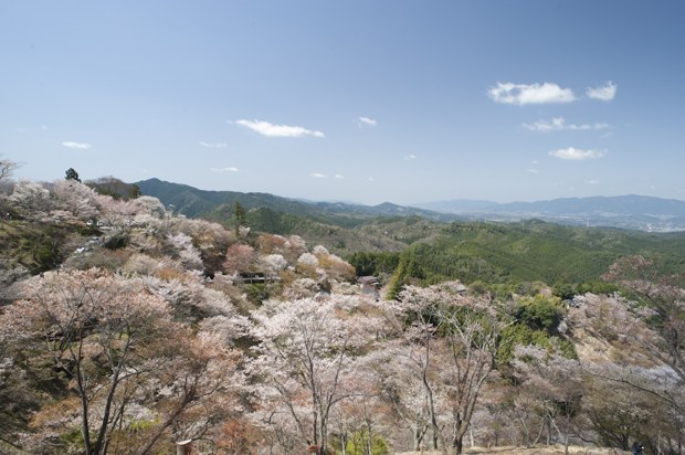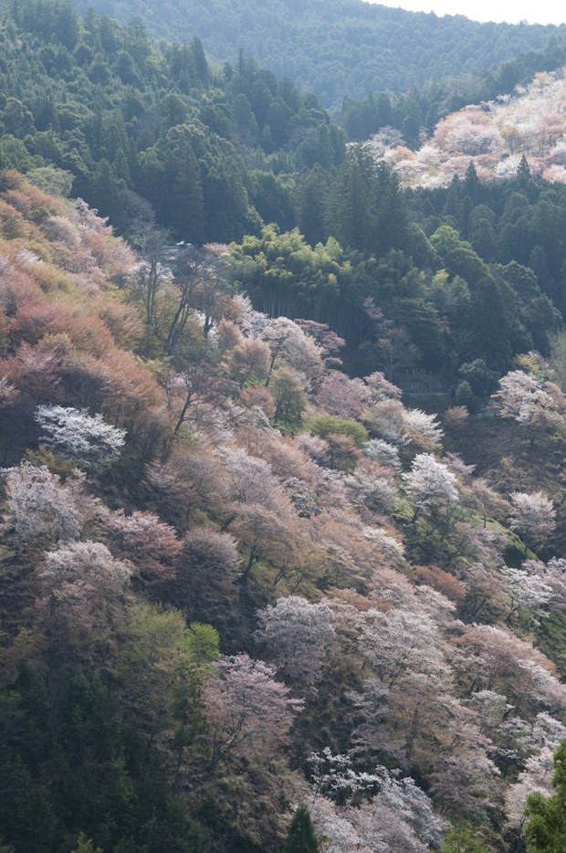 吉野山は下千本、中千本、上千本、奥千本と麓から山の斜面をゆっくりと塗り上げるように、徐々に花を咲かせていく。ふもとの下千本が満開のころ、上千本や奥千本はまだまだつぼみがかたい。それだけ長い期間楽しめるところでもある。