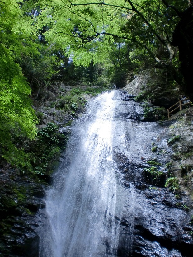 高さ約50メートルの蜻蛉の滝。美しいだけでなく、黒い岩肌に水しぶきが飛び、とても迫力がある。Ⓒ川上村役場