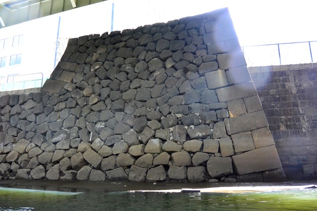 掘留橋より先は、江戸や明治、大正、昭和の痕跡が多く残るゾーン。橋の上や道路からも遺構を見ることができる。川面からだと、さらなる至近距離に!