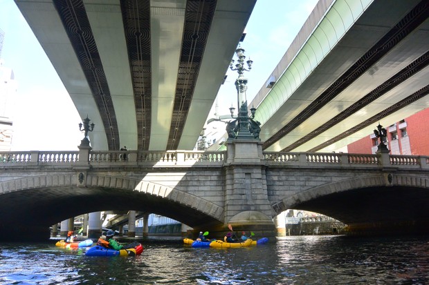 何本もの橋をくぐるたびに、橋の上からは通行人の注目が集まる。平日の昼間、多くの人々は働いているころだ。でも、参加者の皆さんは、今日が休日。橋から手を振ってくれる人も多く、こちらも川面から振り返す。見知らぬ人同士が、こんな風にコミュニケーションを取り合うのも楽しいもの。
