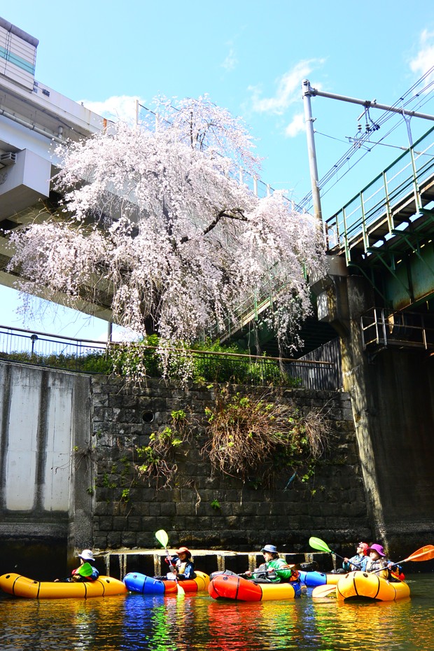 都会のド真ん中を漕ぐ——。いつかはやってみたいなぁと思いつつも、なかなか機会に恵まれなかった。都会なんてところに住んでいると、どうも腰が重くなる(と、都会のせいにしてみる)。そんな折、「パックラフト in 大都会〜春のお花見ver.」開催参加者募集中という絶好の便りが届く。これはいいチャンス!と、さっそく参加してみることにした。