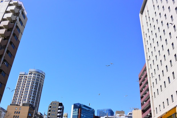 神田川を上流に向かって漕ぎ進めて行く。川沿いのビル群、橋の下、停泊する屋形船。ふだん見下ろしている風景を見上げるのは、新鮮そのものだ。漕ぎ始めは、海鳥がたくさん飛び、海が近いことを感じさせる。