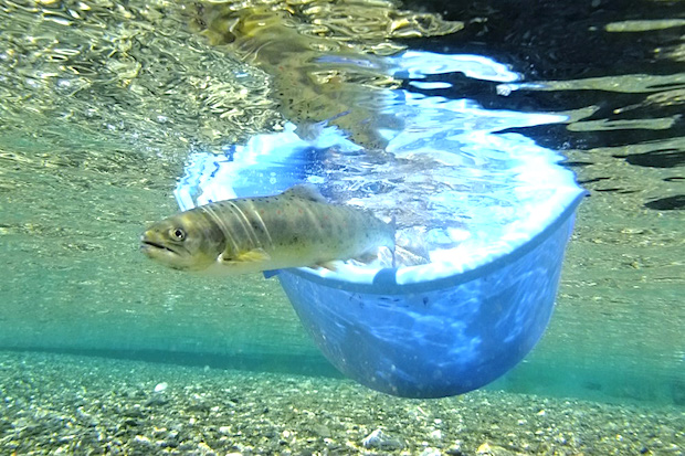 このアマゴ冬季釣り場では、毎秋~冬にたくさんの(今シーズンは約4,600匹)のアマゴが「成魚」放流されている。そして、3月1日からは高知県の仁淀川水系全体で通常のアマゴ釣りが解禁になる。