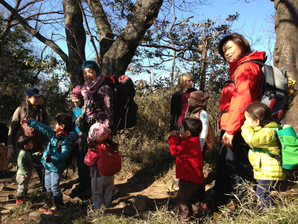 外あそびteteの親子登山風景。たくさんの子どもたちが自然に触れあいながら、自分の世界を広げていく。その様子を見守ることはとても楽しいそうだ