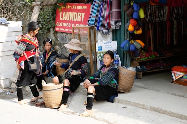 サパにはいくつかの山岳民族が生活しているが、町中でもっともよく見かけるのがモン族だ。彼らは藍染めに刺繍をした衣料や銀細工のアクセサリー作りが得意で、ツーリストは女性陣の販売の猛攻にあう