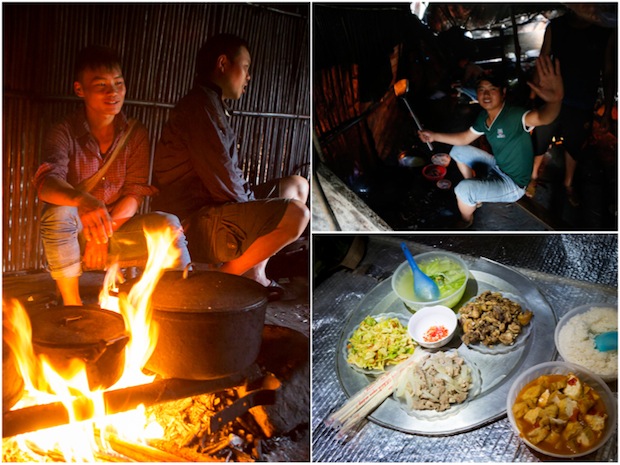 この日の夕食はポーターの少年たちが焚き火料理の腕を振るってくれた。チキンのバーベキューや野菜炒め、厚揚げのチリトマトソース煮込み、青梗菜のスープなど、ベトナム料理専門店も驚くほどの美味しい夕飯だ。僕は荷物を少しでも軽くしたかったので泣く泣く自炊したけど、ほんとアホらしい。ああ、やっぱり手ぶらで来ればよかったかな……。