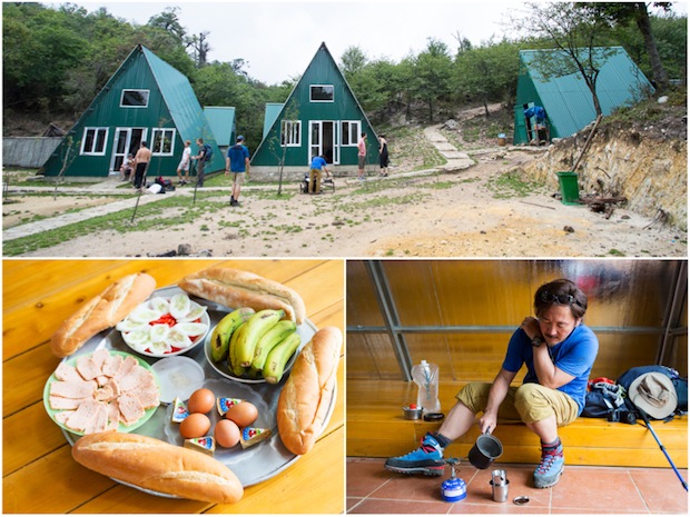 驚くほどキレイな小屋が並ぶキャンプ1。ツアーのお昼はベトナム風サンドイッチ「バインミー」だ