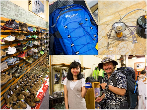 旧市街にあるアウトドアショップ「Umove」。ガス缶はもちろん、トレッキングシューズやバックパック、シェルといった登山に必要な道具が揃う。「Fansipan」というブランドもみかけた。2階ではカヤック関連の道具も扱っている