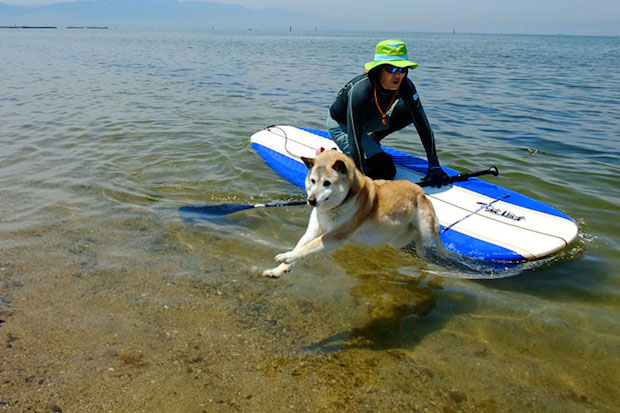 ひとりが裸足歩き、ひとりがSUPというペアで楽しむのもおすすめ。行きと帰りで交代すれば、有明浜を2倍楽しめます。しかしまあ、晴れた瀬戸内海って、波が全然ないね~。