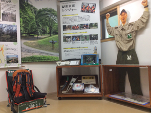ビジターセンターでは道案内や高尾山の自然紹介はもちろん、こうしたレンジャーの活動を知らせるブースも設置している