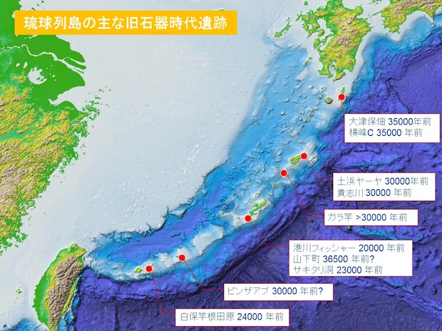 全長1,200kmにもおよぶ琉球列島では全域で3万年前頃の遺跡が確認されていて、祖先たちは定着するだけでなくあえて航海に挑戦していたとも考えられるのだそうです。