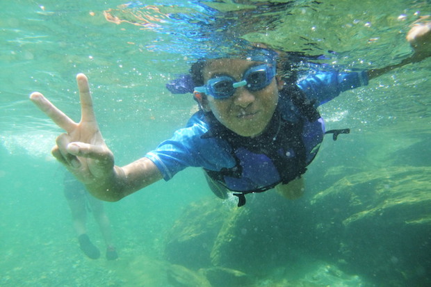 彼女のようにカヤック用の救命胴衣着用なら、飛び込みもオッケー
