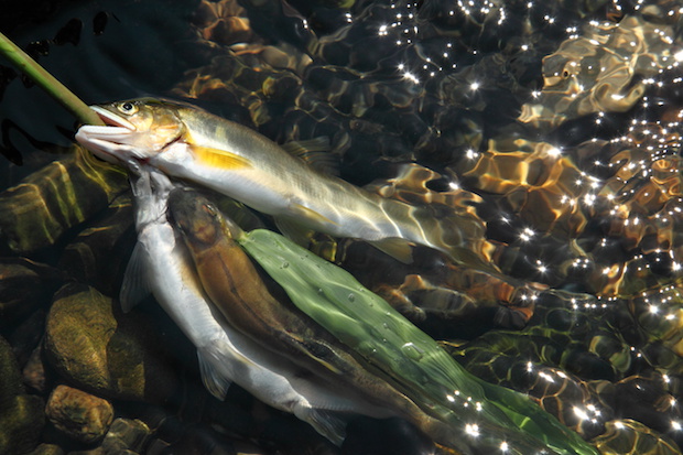 アユは各漁協のメインの収入源なので、釣獲には結構うるさく、川遊びの片手間の釣りであっても、数千円の遊漁料を払わなくてはいけません。また、ルアーを使ったアユ釣りが禁止されている川もあります。