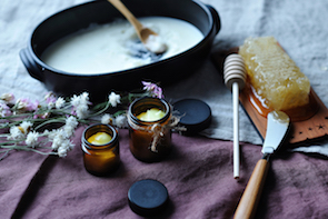 ■オリジナル蜜蝋ハンドクリーム作り/蜜蝋とは、ミツバチが巣作りの時に作りだす天然ワックス。この蜜蝋と、富士北麓で集められた天然素材を合わせ、オリジナルのハンドクリームを作ります。冷たい風が吹く冬に備える、温かな手作りの時間です