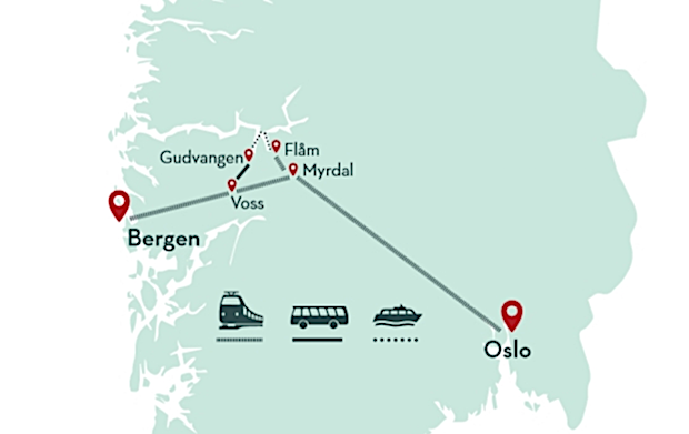 古都ベルゲンからノルウェーに入り、フィヨルドの谷間を進む船や、絶景の車窓が続く山岳鉄道を乗り継ぎながら首都オスロをめざす旅。移動そのものを楽しみつつ、自然の王国ノルウェーを気軽に体験できちゃうルートがあるんです。