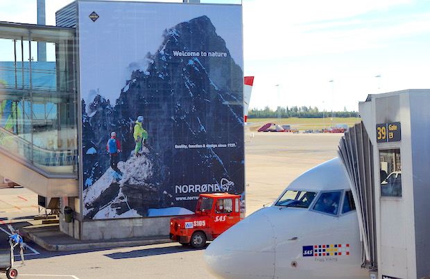 空港では「Welcome to nature」とノローナの看板がお出迎え