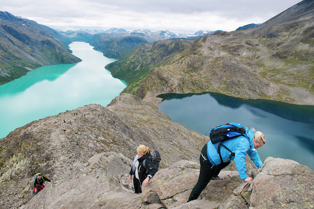 たとえば、ノルウェー人にもっとも人気があるトレッキングコースのヨートゥンハイメン国立公園のベッセゲン尾根。起点となる山小屋イエンデハイムへはオスロからバスで5時間半でアクセス(ノルウェーのバス情報はノルウェイ・バス・エクスプレスのウェブサイトで確認できます)。