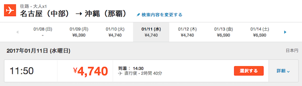 行き先は北海道に留まらず、たとえば名古屋ー那覇間なら6,210円!