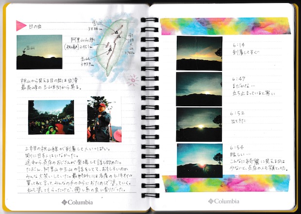 6:54。玉山の稜線から太陽が差し込んだ。眩しい……。こんなにきれいに見える日は少ないと、売店の人も写真を撮っていた