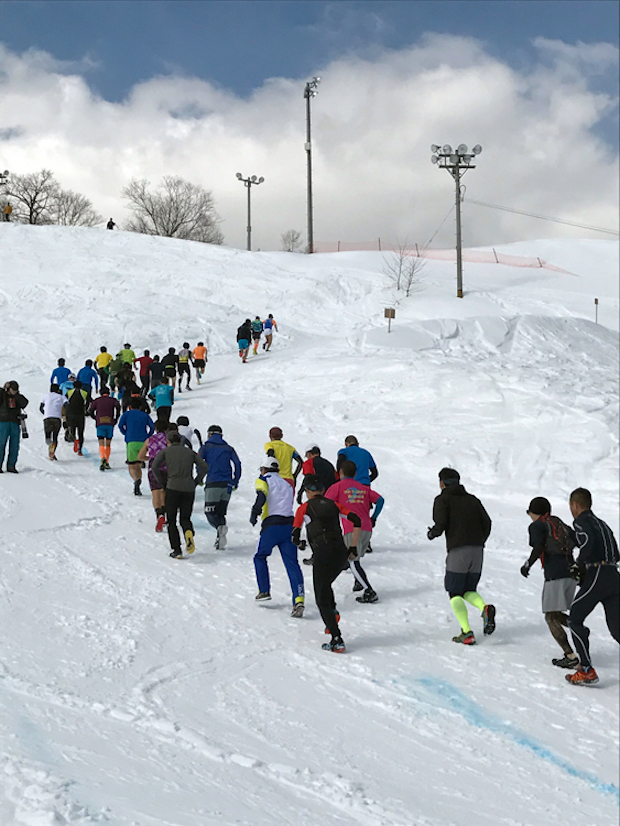 起伏のある雪のゲレンデを走って登ったり下りたり。そんな心臓にも足にも負担のかかりそうな厳しいレースにいったいどんな人が出ているんだろう、と興味があり観に行ってみたのです。事後のレポートとはなりますが、まだまだ寒いこともある札幌での熱い一日を振り返ってみたいと思います。