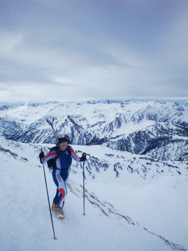 山岳スキー競技。一般にはほとんど馴染みがないこの競技について、はじめに説明しておこう。スキー競技とはいいつつも、レース中には「滑り」だけでなく「登り」もある。登りと滑走を繰り返し、タイムを競う。おもにスキー場を起点に行われるが、大部分はいわゆるバックカントリーが舞台だ。
