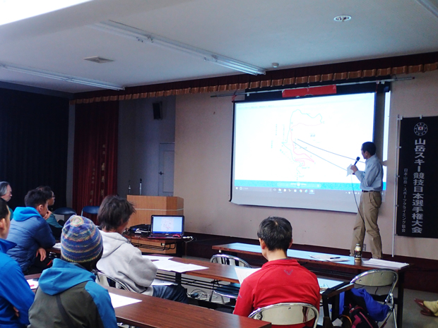 レース前日のブリーフィング。天候や雪の状態によって直前までコースは見直しや変更が行われる。
