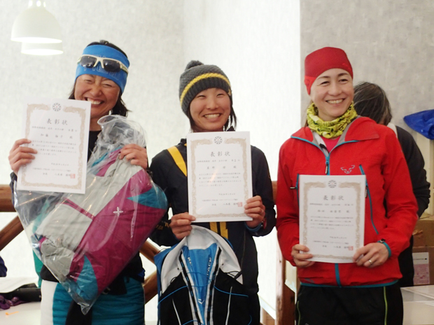 成年女子で優勝した星野緑選手(中央)、2位の加藤倫子選手(左)、4位の西田由香里選手(右)。