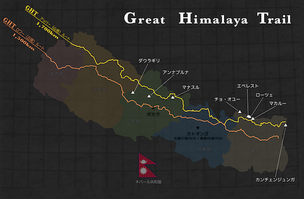ネパールの東西を貫くヒマラヤ山脈の麓にはそうした暮らしがあり、それらの集落を結ぶ生活道が編み目のように張りめぐらされている。そんな古くからの踏み跡をつないだロングトレイルがグレートヒマラヤトレイル(GHT)だ。