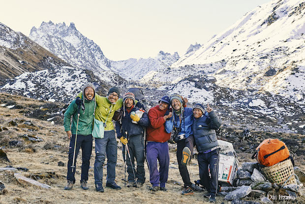 4~5年をかけて歩き続ける「GHT project」。山岳ガイドの根本秀嗣さん、ライターの根津貴央さんのメンバーに加え、ガイドのプラカスさんをはじめとした3名の現地スタッフと旅をともにする。