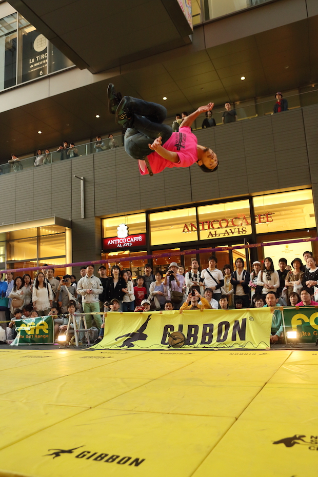 トリッキーな技を繰り広げるGappaiこと大杉 徹。思わず魅了される観客たち
