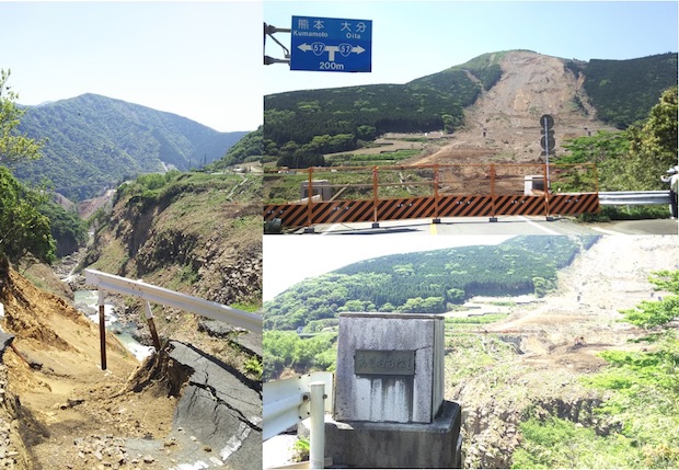 震災から一年以上が過ぎたものの、阿蘇大橋の周辺はまだこんな具合。それでも、現地の人たちは少しずつでも前へと進む