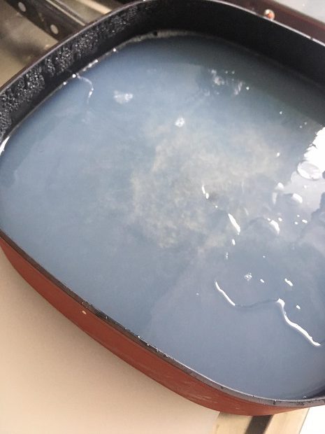 その後、液をザルで漉し、粗熱が取れたら、冷蔵庫で冷やして固めて完成。