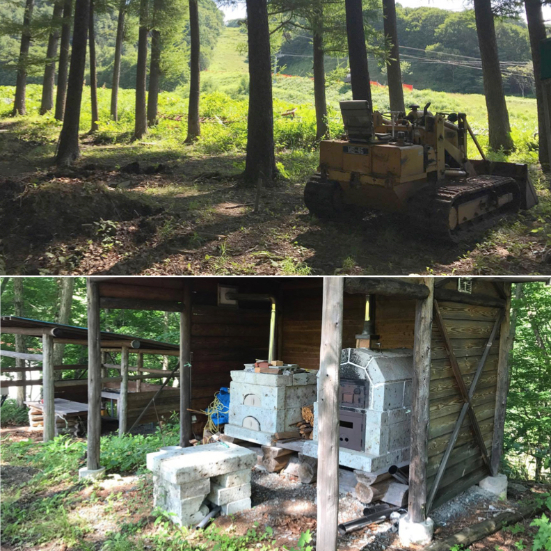 スノーパーク尾瀬戸倉の第4リフト横の林の中をキャンプ場として造成中。常設のピザ釜も使えるようにするらしいですよ♪