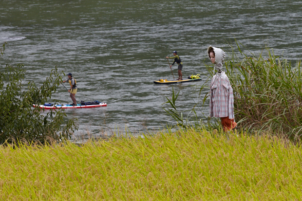 唱歌『故郷(ふるさと)』が生まれた中野市の千曲川流域を行く。農作業をしている人がたくさんいると思ったらすべて案山子であった。