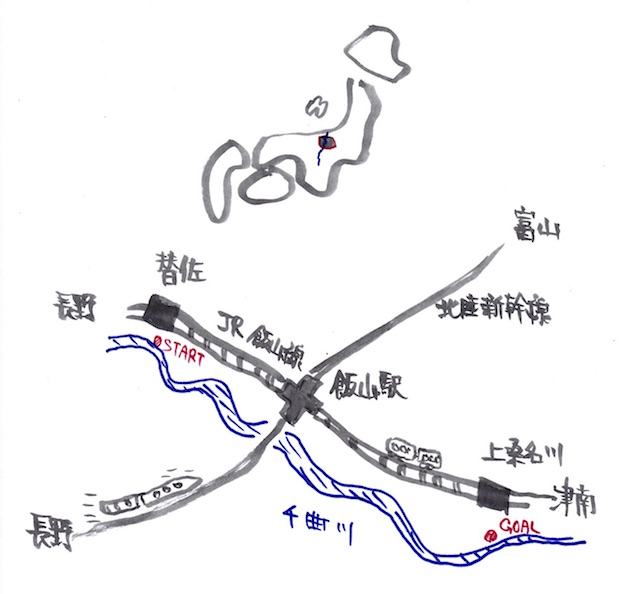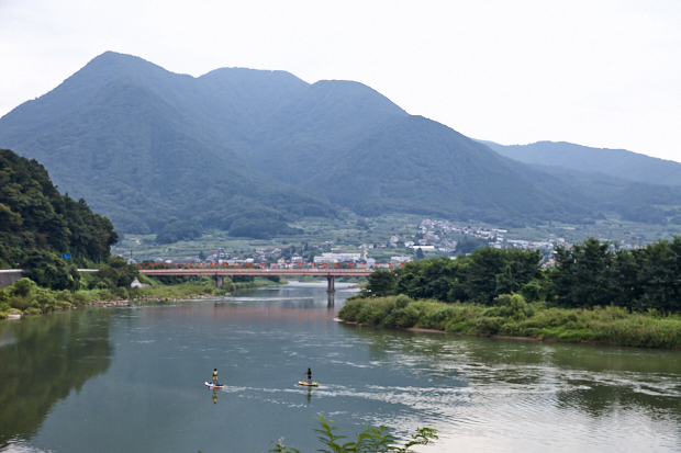 東京駅から信越自然郷の玄関口にあたる飯山駅までの所要時間は約1時間50分。始発の東京駅6:28発に乗れば、飯山駅に8:19に着き、飯山線に乗り換え、スタート地点の替佐駅にはなんと9:06には着いてしまう。関東から十分に時間的余裕を持って下れる日帰りリバーダウンコースである。今回はカヤックではなく、より持ち運びがラクで、セットアップがスピーディーなインフレータブル式SUPで下ってみよう。
