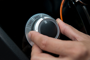 左)ここで忘れずにダイヤルを4WDオートに変更。駆動力を自動で適切に調節してくれる。